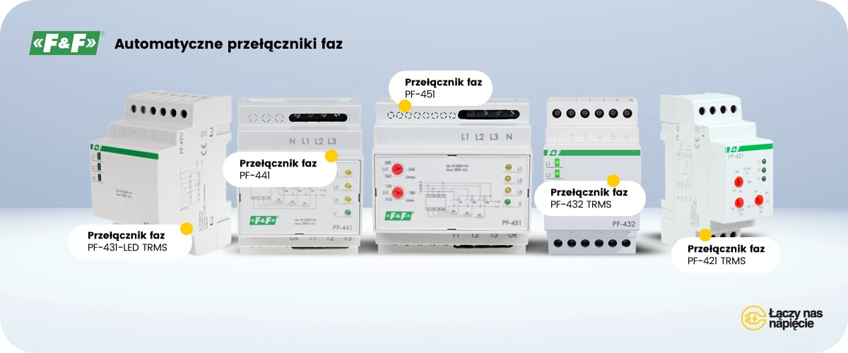 W instalacjach wielofazowych, w których mamy urządzenia jednofazowe, w razie ryzyka zaniku napięcia można zainstalować czujnik, który wykryje takie zdarzenie i spowoduje automatyczne przełączenie się źródła zasilania. System automatycznego przełączania faz znacząco zwiększy pewność, że kontrolowane przez niego urządzenie będzie działało, gdy będzie niezbędne, nawet gdy podstawowy obwód zasilający ten sprzęt zostanie rozłączony bezpiecznikiem.