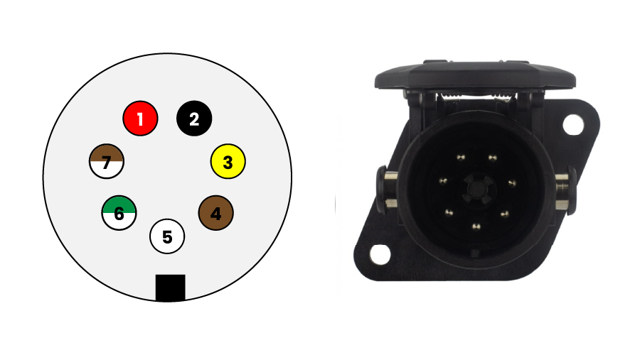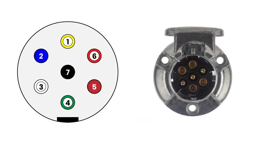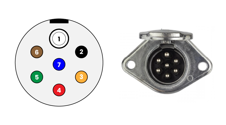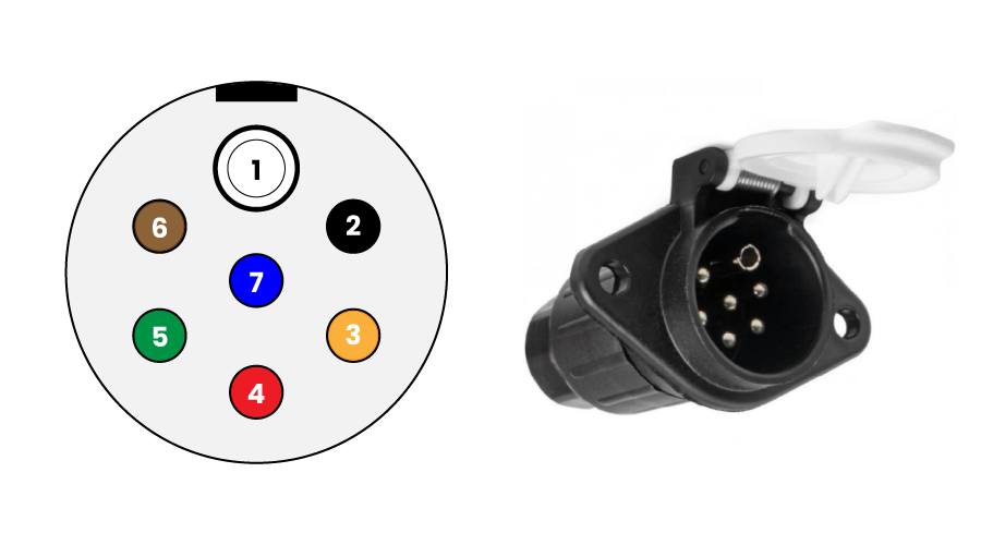 Jest to jeden z najstarszych standardów łączących samochód z przyczepą. Gniazda i wtyczki w standardzie 12 V 7-pin są powszechnie stosowane w instalacjach elektrycznych haków holowniczych, szczególnie do przyczepek towarowych o dopuszczalnej masie całkowitej do 750 kg, które nie wymagają światła cofania. Standard ten zapewnia podstawowe funkcje oświetlenia przyczepy, takie jak: światła pozycyjne, kierunkowskazy, światła stopu, światło przeciwmgielne.