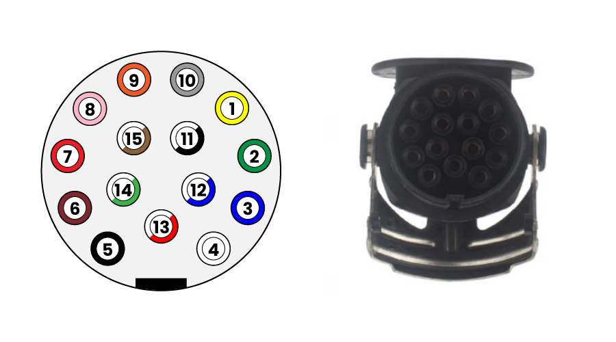 Gniazda i wtyczki 24 V 15-pin ADR jest stosowany w pojazdach ciężarowych i przyczepach przeznaczonych do przewozu materiałów niebezpiecznych, zgodnie z konwencją ADR (Accord Dangereux Routier). Zgodność z normą ISO 12098 określa układ pinów i funkcje dla systemów stosowanych w pojazdach ADR. Złącza w tym standardzie mogą przesyłać sygnały do systemów takich jak: EBS (elektroniczny system hamowania), ABS, światła cofania, zasilanie stałe i po stacyjce, sygnały diagnostyczne, dodatkowe światła ostrzegawcze.