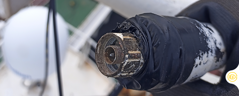 - Obcięcie środka izolacji – zostaw ok. 3 mm przewodu sygnałowego.