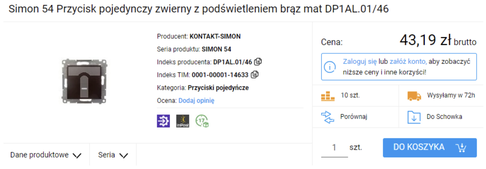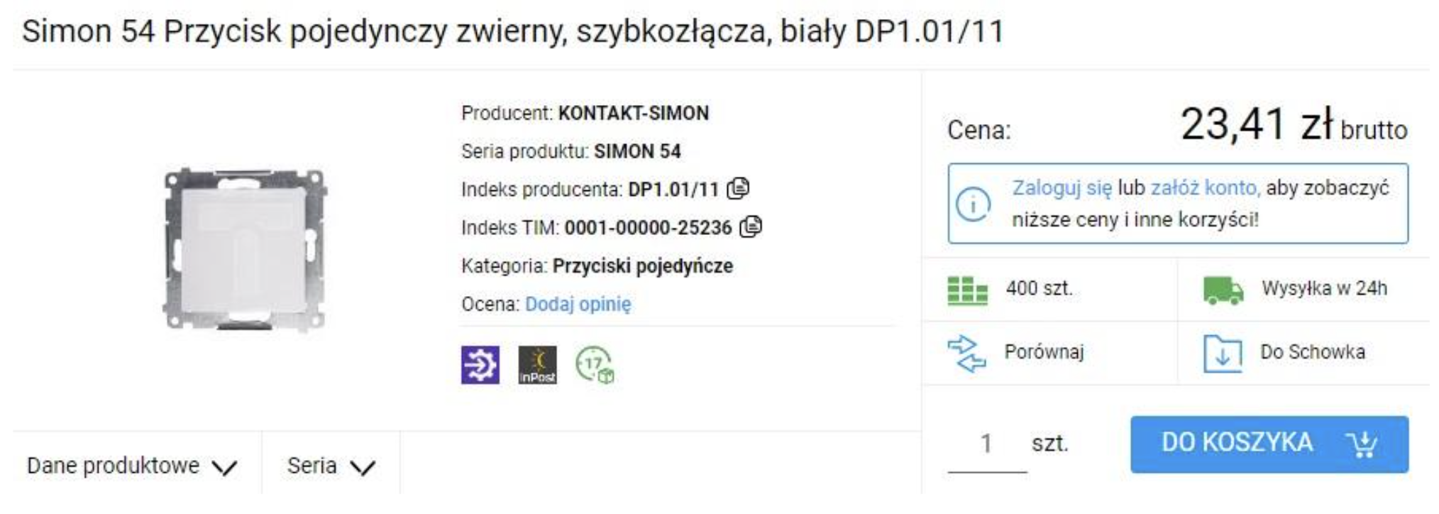 Podsumowując, najtańszy kompletny łącznik pojedynczy w serii Simon 54 możemy kupić w cenie 28,05 zł a najdroższy 163,53 zł, co daje nam różnice ponad 135 zł na jednym łączniku (po zalogowaniu się na tim.pl możesz mieć nisze ceny).