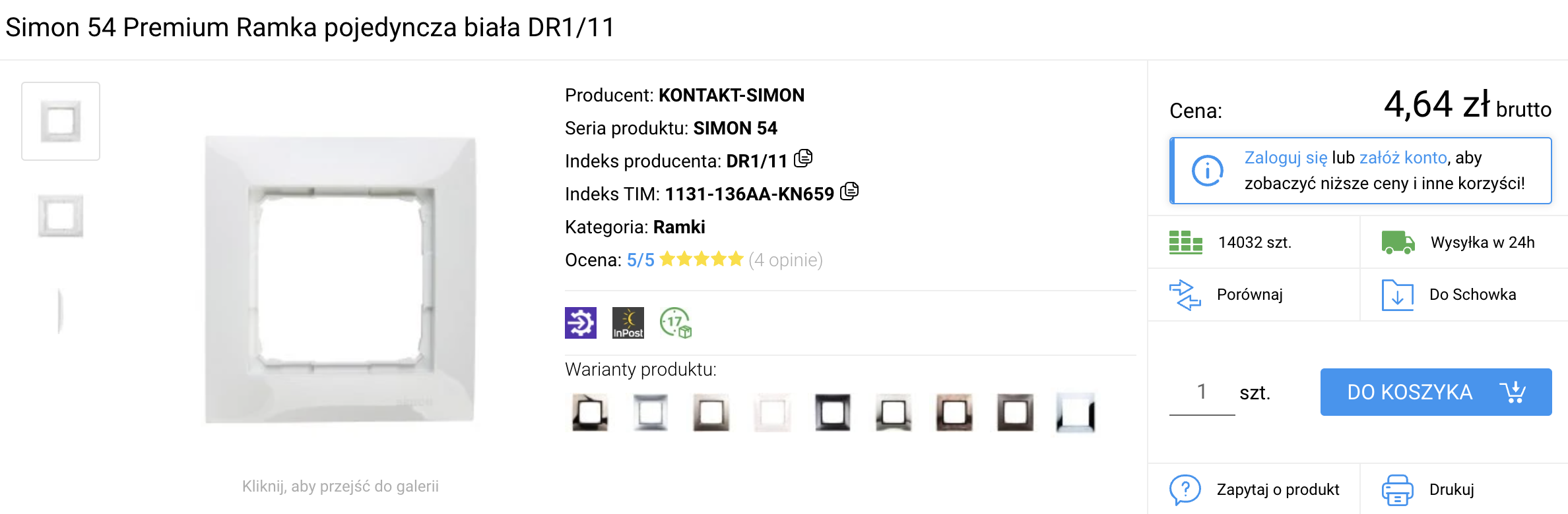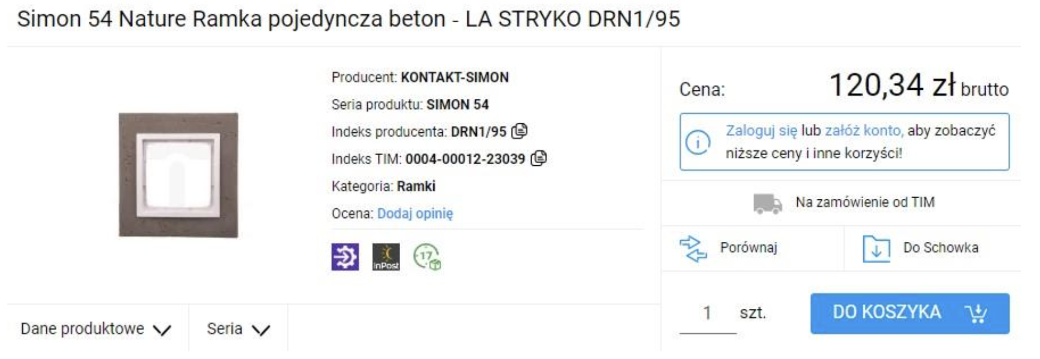 Jak widać różnica w cenie samej ramki może być kolosalna, ale rozmawiamy tu o dwóch różnych seriach. Sprawdźmy jak ceny kształtują się w ramach jednej serii. Najdroższa będzie ramka betonowa, która kosztuje 120,34 zł natomiast najtańsza biała 4,64 zł.