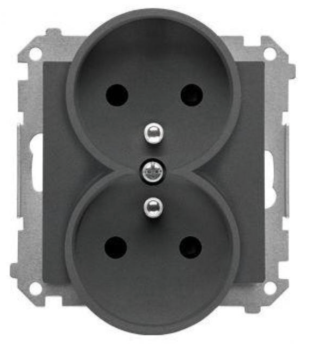 W miejscach, gdzie spodziewamy się podłączać więcej urządzeń, warto rozważyć montaż gniazdek podwójnych np. Simon 55 Gniazdo wtyczkowe podwójne z uziemieniem z przesłonami (moduł) 16 A, 250 V~, szybkozłącza Grafitowy mat TGZ2MCZ.01/116.
