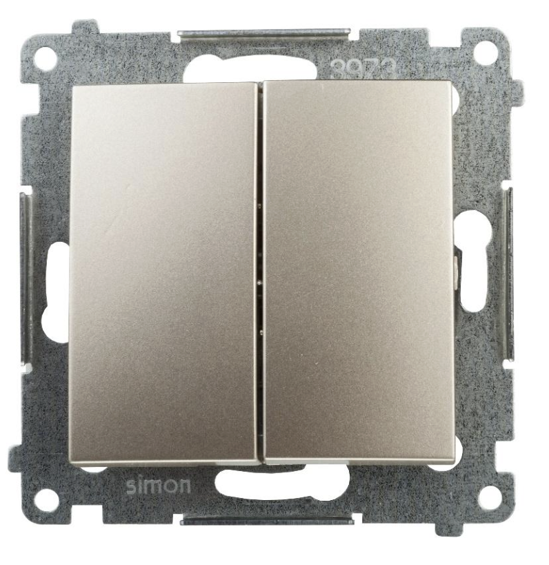 Sterowanie dwoma obwodami np. żyrandol i kinkiet lub dwie sekcje w żyrandolu można zrealizować na Simon 54 Łącznik świecznikowy, szybkozłącza, złoty mat DW5.01/44.