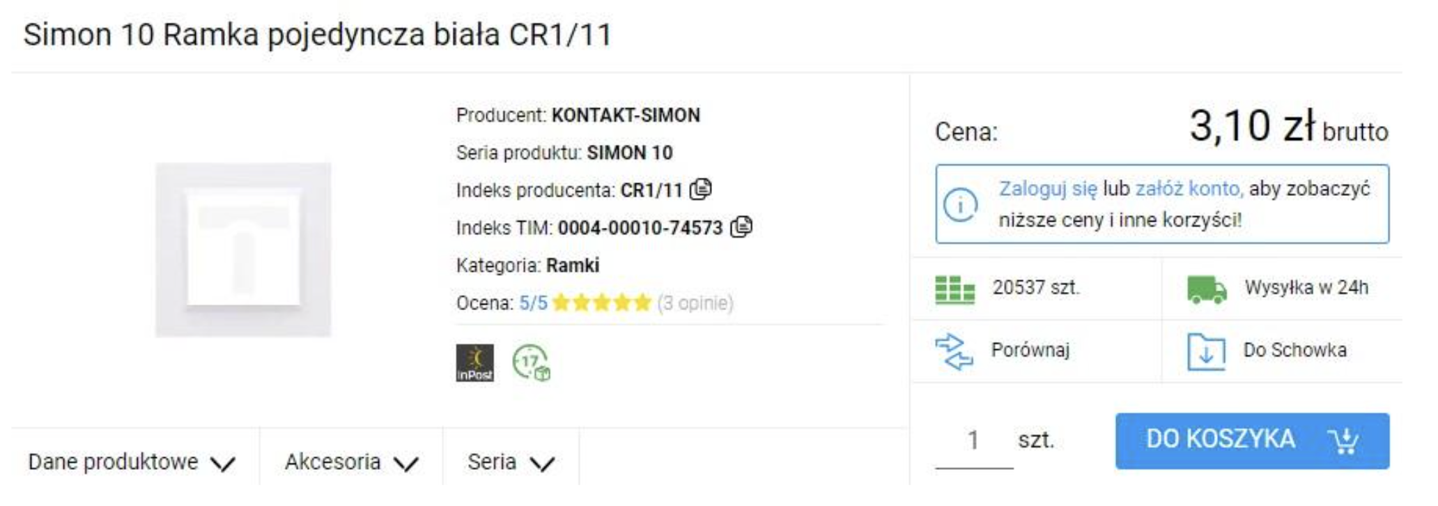 O jakich różnicach w cenach rozmawiamy? Czy jest się na czym koncentrować? Sprawdźmy na przykładzie ramki jednokrotnej producenta Kontakt-Simon.