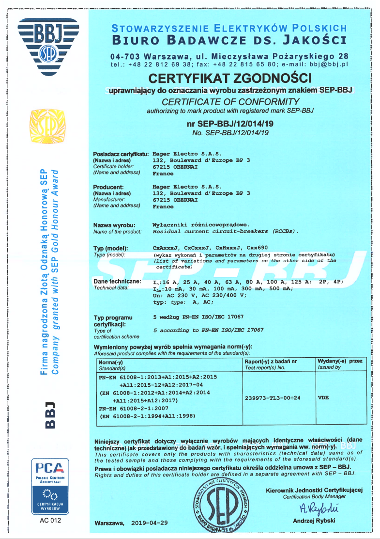 - Wyniki badań wyłączników różnicowoprądowych RCCB — KIGEiT