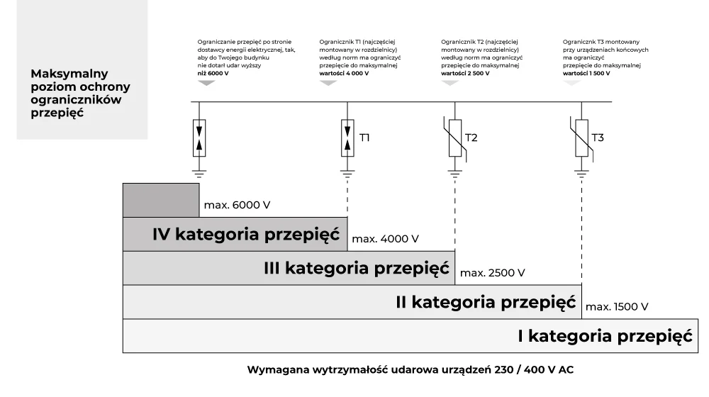 - zapobiegać wzajemnemu indukowaniu się przepięć z obwodów niechronionych do obwodów chronionych