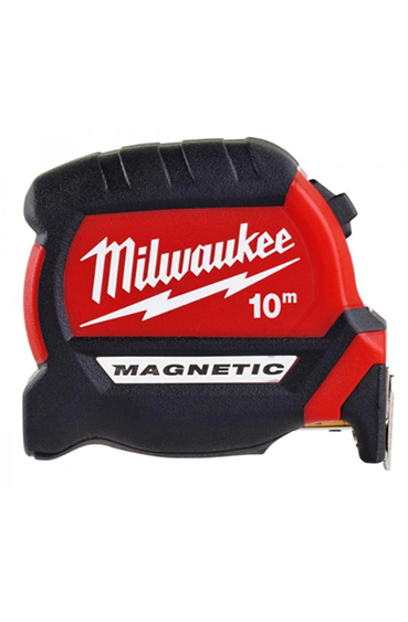 Z kolei w miarce mamy mocny magnes na początku taśmy, który umożliwia łatwe przymocowanie do płaskich metalowych powierzchni oraz rur. Taśma nie załamuje się przy wysuwie do 3,4 m. Powłoka z nylonu nie odbija światła i 10-krotnie zwiększa trwałość taśmy. Nadruk nie schodzi nawet przy piaskowaniu. Szerokość taśmy 27 mm, 2-stronna skala — łatwiejszy odczyt pomiaru. Opatentowany system zatrzymania taśmy palcem. 5-punktowe wzmocnienie obudowy. II klasa dokładności.