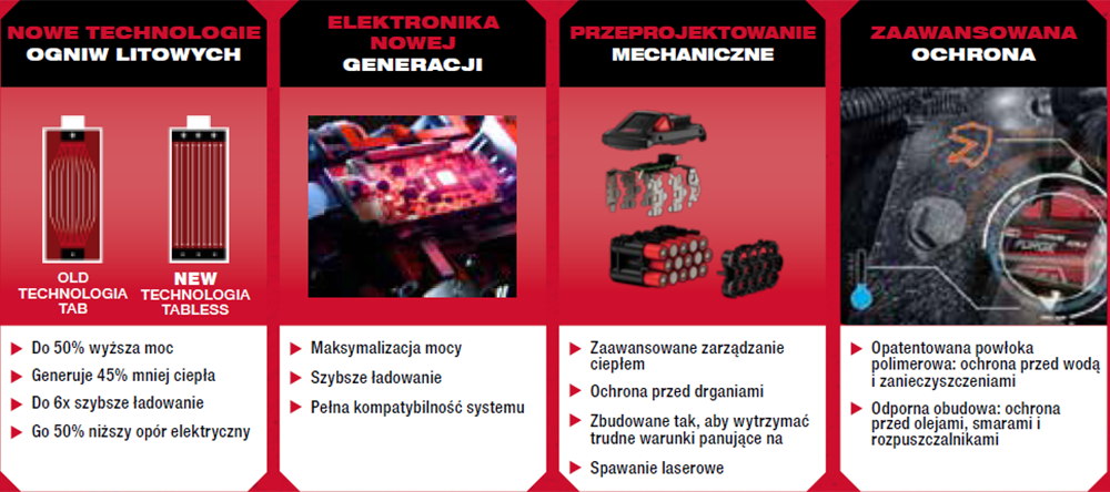 Przekłada się to oczywiście na wydajniejszą pracę elektronarzędziami. Firma zwraca dużą uwagę również do ergonomii swoich narzędzi oraz wygody podczas pracy nimi. Jednym z elementem będącym podstawą konstrukcji elektronarzędzi jest oczywiście silnik. I w tej dziedzinie firma Milwaukee poczyniła sporo udoskonaleń. Skonstruowała silniki bezszczotkowy o mniejszych wymiarach w stosunku do dotychczas produkowanych, a zarazem zwiększono jego moc. Było to możliwe dzięki gęstszemu nawinięciu uzwojeń stojana.