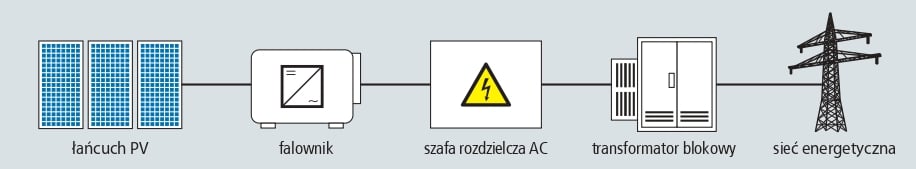 - transformatora blokowego podwyższającego napięcie z poziomu AC falownika do poziomu sieci energetycznej.