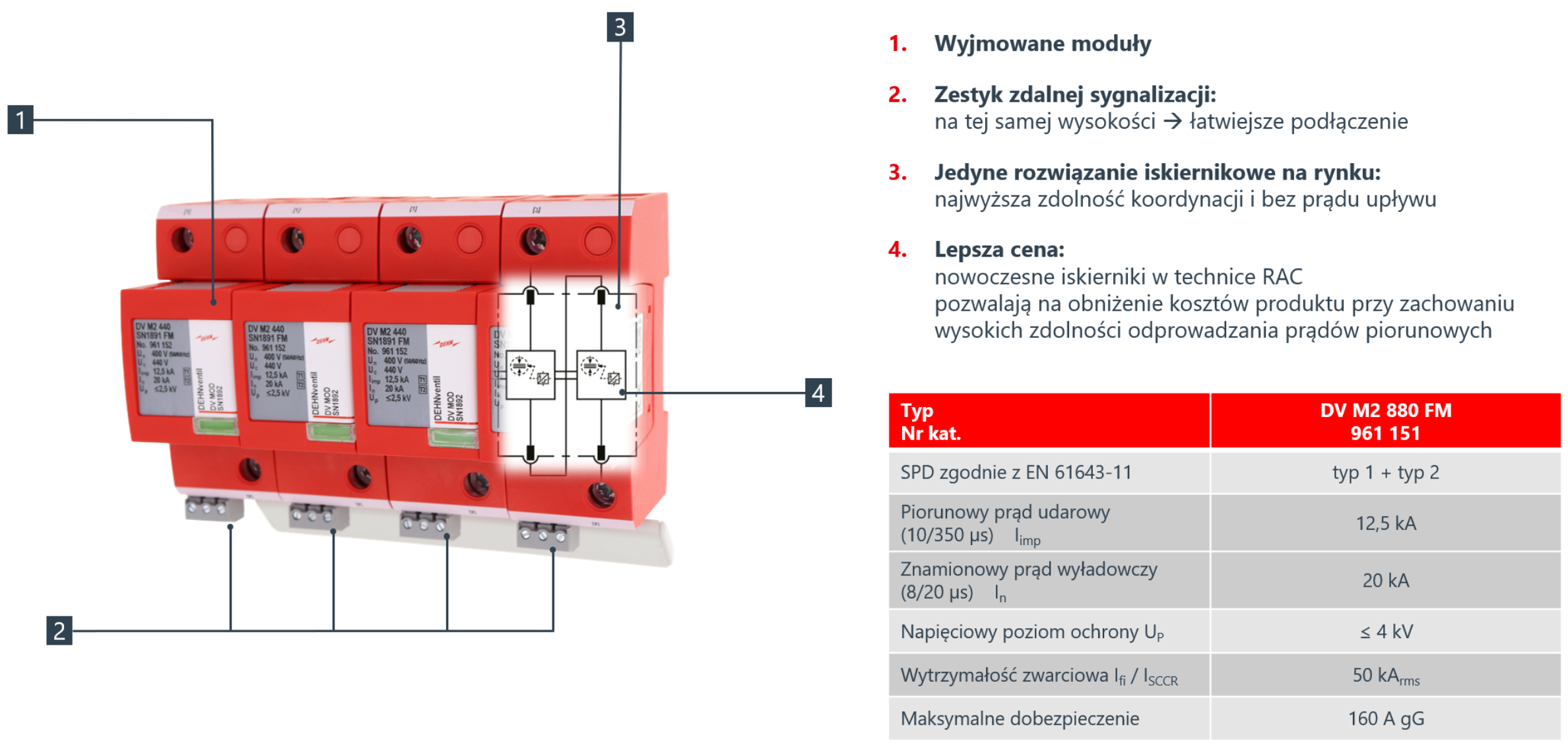 Ze strony www.dehn.pl można pobrać kartę katalogową w języku polskim oraz instrukcję montażu. Ogranicznik przepięć dzięki technice iskiernikowej RAC zapewnia koordynację energetyczną z ogranicznikami przepięć typu 2 zabudowanymi wewnątrz falowników.