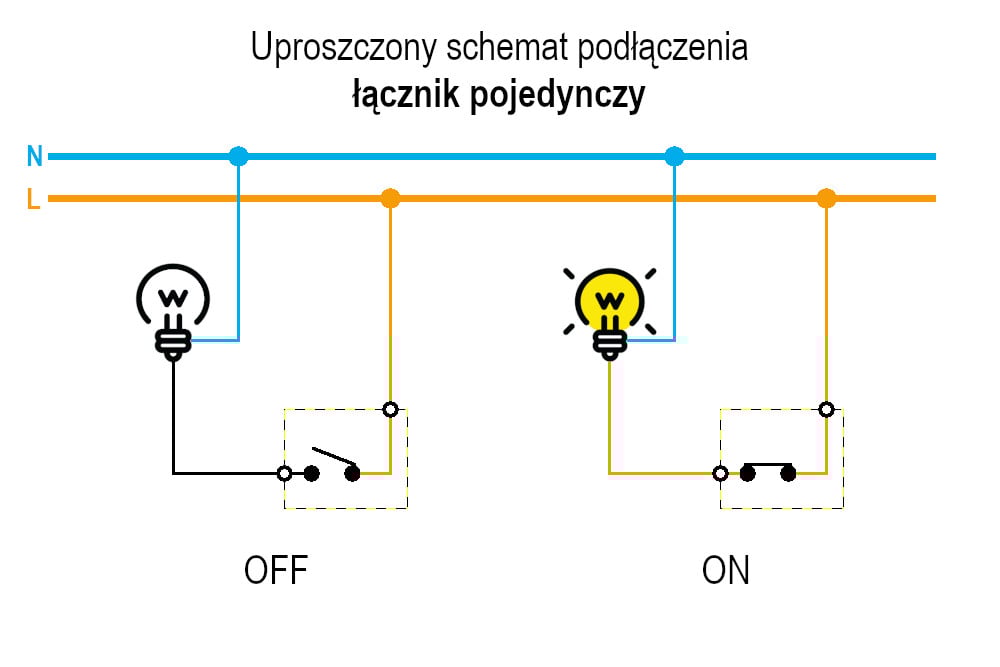 Obok gniazd, łączniki pojedyncze są najczęściej spotykanym elementem łączeniowym w instalacjach elektrycznych. Służy do załączania i wyłączania odbiorników energii elektrycznej.