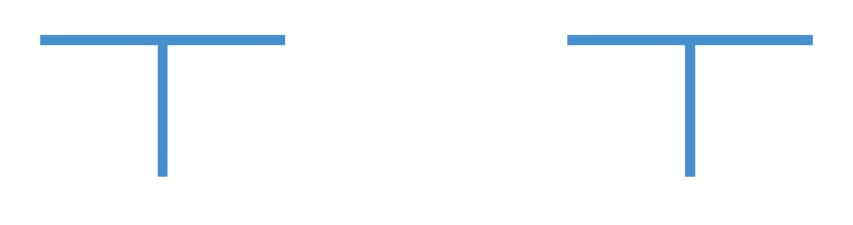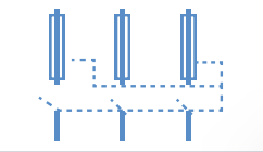 Dwie równoległe linie, z jedną linią przerywaną dla kondensatorów zmiennych.