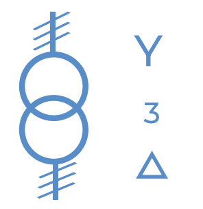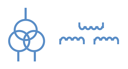 Symbol elektryczny grupa trzech transformatorów jednofazowych o połączeniu gwiazda-trójkąt (pozycja normy 06-10-11 06-10-12)
