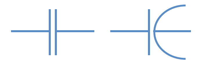 Zazwyczaj oznaczane jako prostokąty lub zygzaki. - Kondensatory