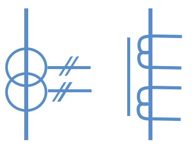 Symbol elektryczny transformator dwuuzwojeniowy (pozycja normy 06-09-01 06-09-02)