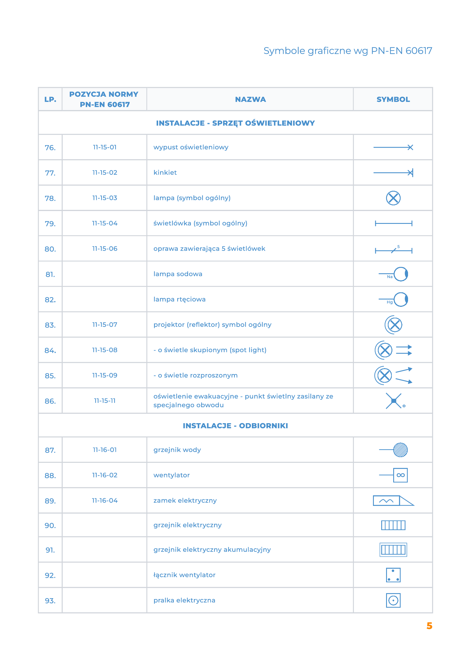 Symbol elektryczny oprawa zawierająca 5 świetlówek (pozycja normy 11-15-06)