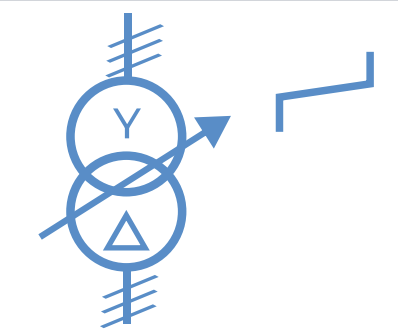 Symbol elektryczny transformator trójfazowy o połączeniu gwiazda-trójkąt z podobciążeniowym przełącznikiem zaczepów (pozycja normy 06-10-13)