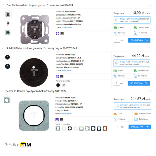 Jak widać, wykorzystując ten sam mechanizm montowany w ścianie, możemy uzyskać różne kształty i różne ceny przykładowego gniazdka.