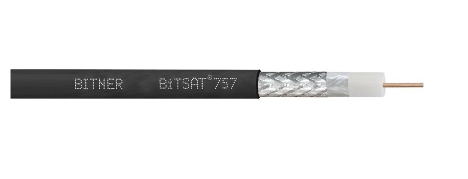 Przykładem koncentrycznego przewodu antenowego dedykowanego na zewnątrz (odpornego na UV i warunki atmosferyczne) jest: Przewód koncentryczny BiT SAT 757 BLACK 1,05/5 UV czarny LF0501 klasa Eca /100m/.