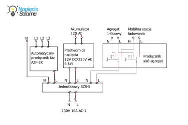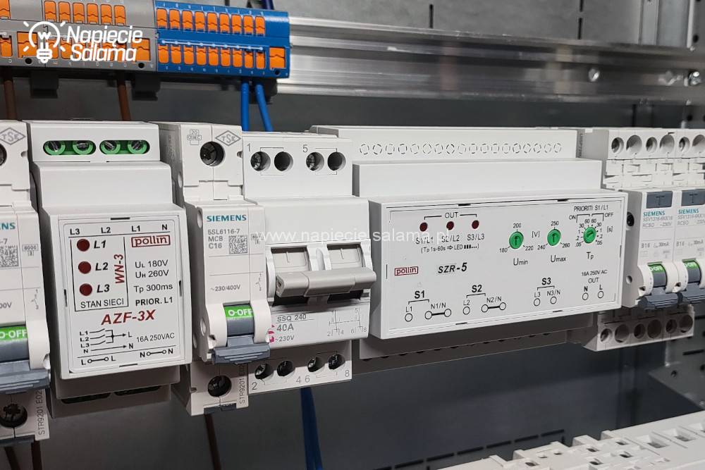 - Sterownika SZR – mózg całego systemu, który analizuje parametry napięcia i decyduje o przełączeniu.