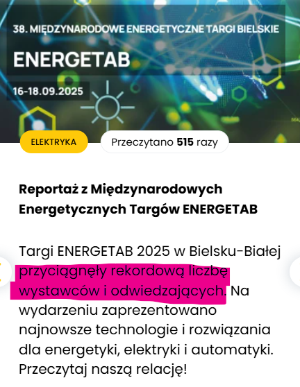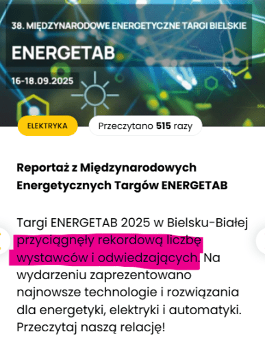 Zostałem wywołany to wtrącę moje 3 gr. Na Energetabie kiedyś bywałem. Teraz już nie. Mam raczej negatywne zdanie o tej imprezie i nie będę powtarzał jej wad. Mój zięć bywa służbowo co roku i uważa, że w obecnej formie to jest to strata czasu i pieniędzy. A rekordowymi w tym roku to one nie były, zwiedzających było mniej.