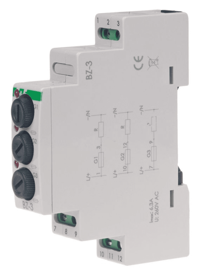 Stosując BZ-3 można zabezpieczyć 3 różne obwody a moduł zajmuje 1 miejsce w rozdzielni.