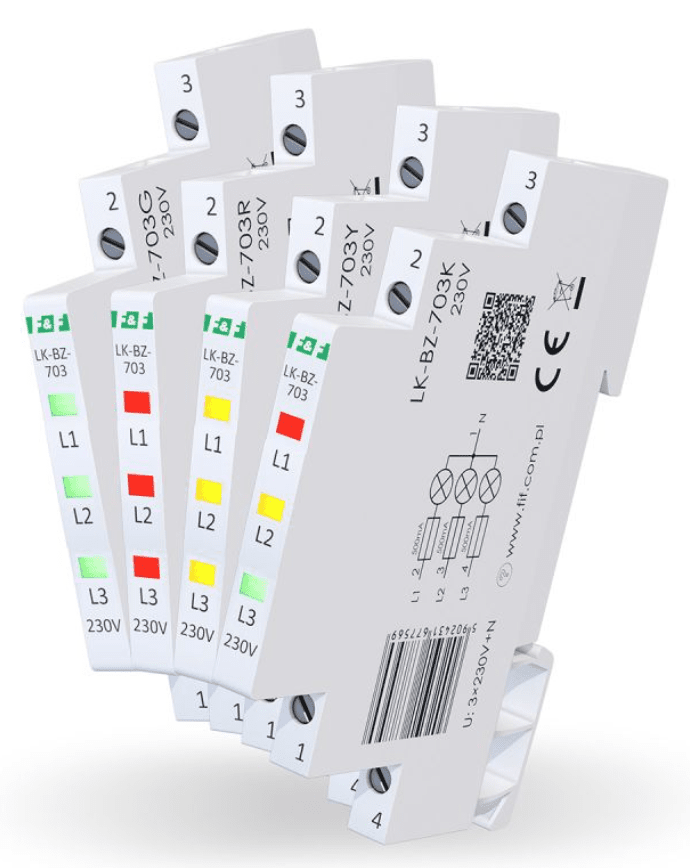LK-BZ3-703 - Lampka kontrolna z zabezpieczeniem - 3 oddzielne obwody w jednym module - zajmuje 1/3 pojedynczego modułu (ok.6mm).