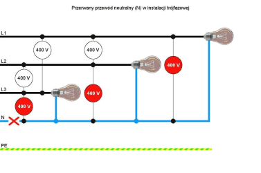 Wezwany do awarii elektryk stwierdził, że przepalił się przewód neutralny.