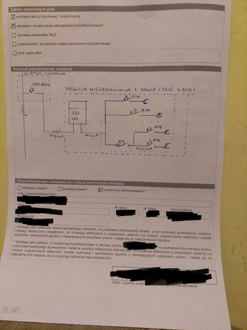 4. Dopilnować, by elektryk narysował w schemacie, jak poprowadzony jest przewód neutralny do licznika.