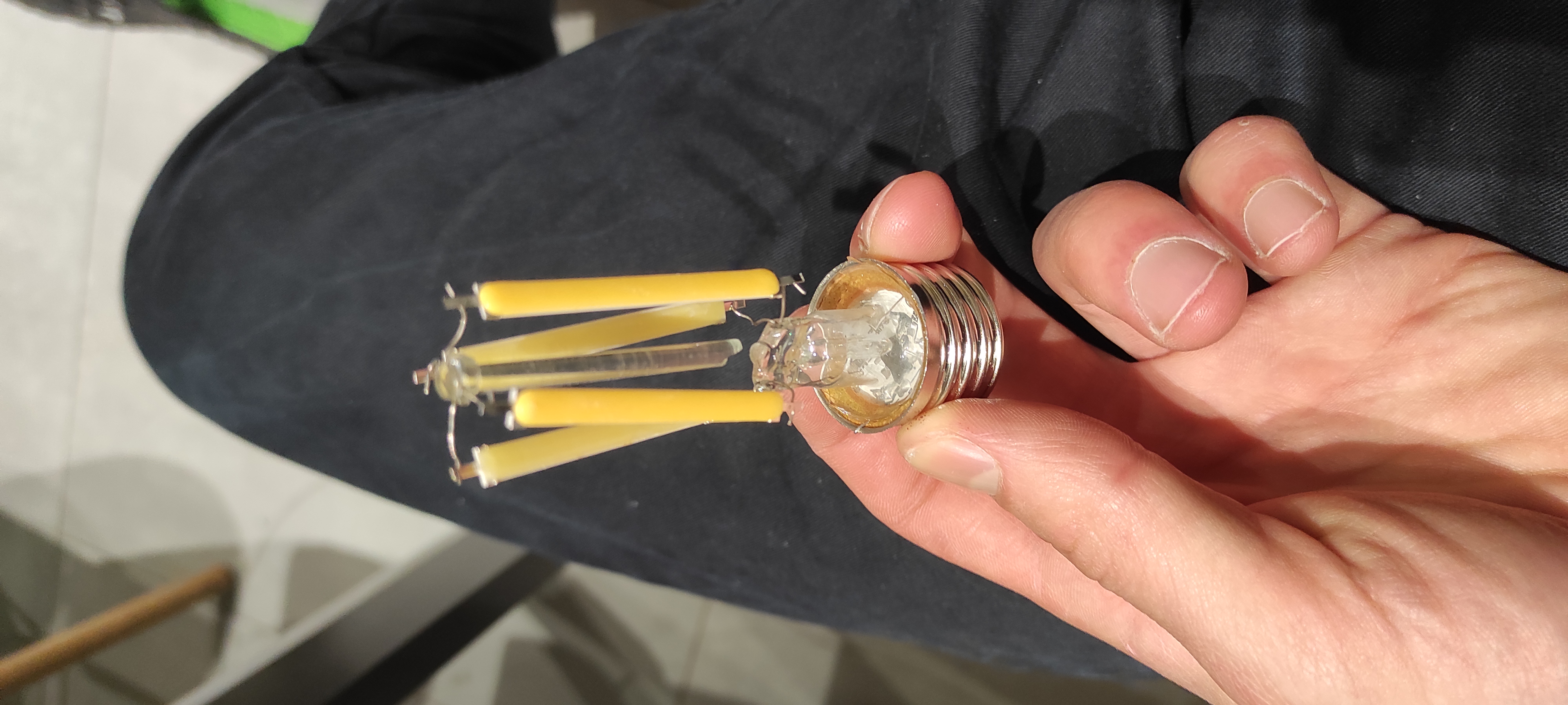 Załączam zdjęcie, jak widać na nim szkło w żarówce jest przerwane. Lecz moje pytanie brzmi, czy to wgl pełni/pełniło jakąkolwiek funkcję? Wyczytałem, że szkło nie przewodzi prądu, jak już to ciepło. Nie ukrywam, że trochę się boje to odpalić, ale z drugiej strony ta ciekawość...🤣 Potrafi ktoś mi pomóc i powiedziec czy to będzie nadal działać? Nie potrzebuję nowej żarówki, zależało mi żeby rozbroić tą konkretną do gołych ledow, ale jak widzicie wyszło mi to trochę nieudolnie
