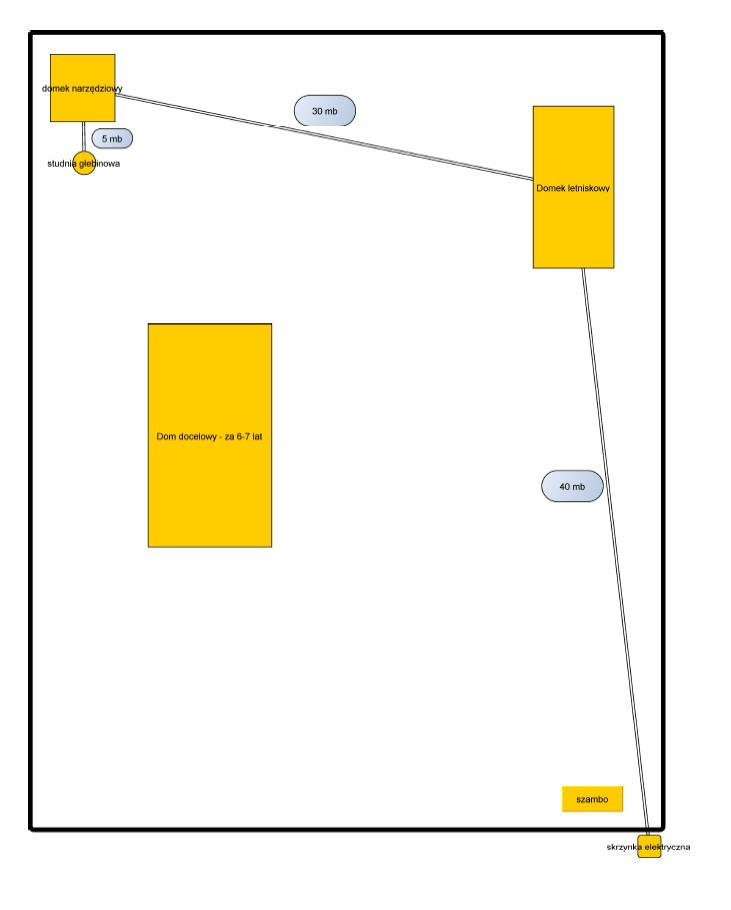 Załączam poglądowo usytuowanie budynków istniejących, odległości jak i planowanego domu docelowego.