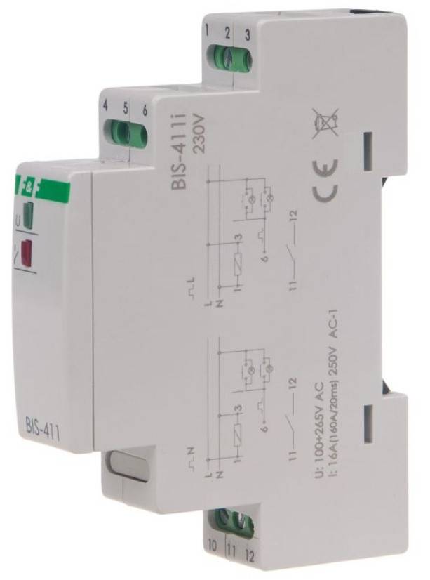 BIS-411 230V - wykonanie do rozdzielni; szyna DIN;; styk separowany; 16A: