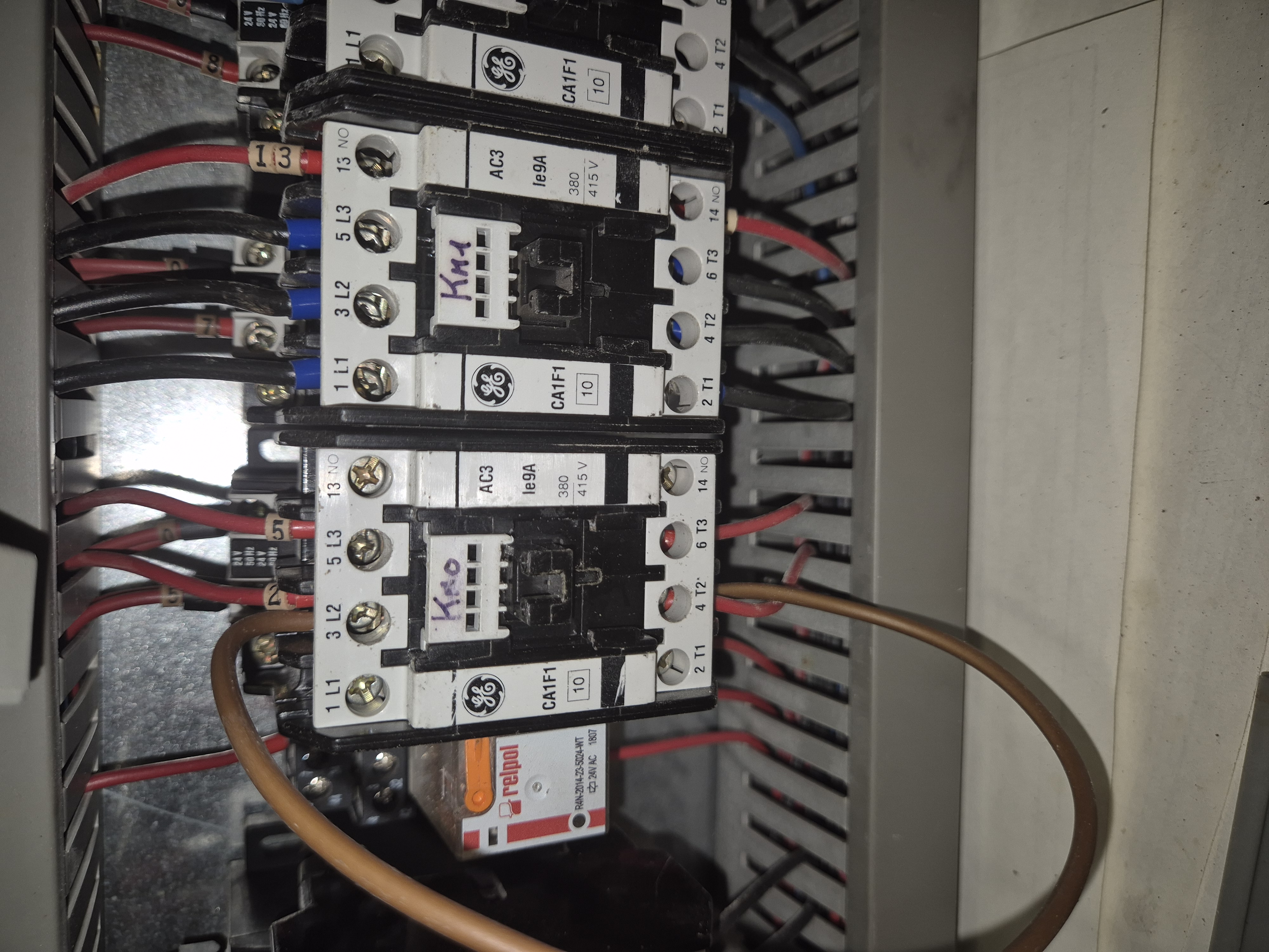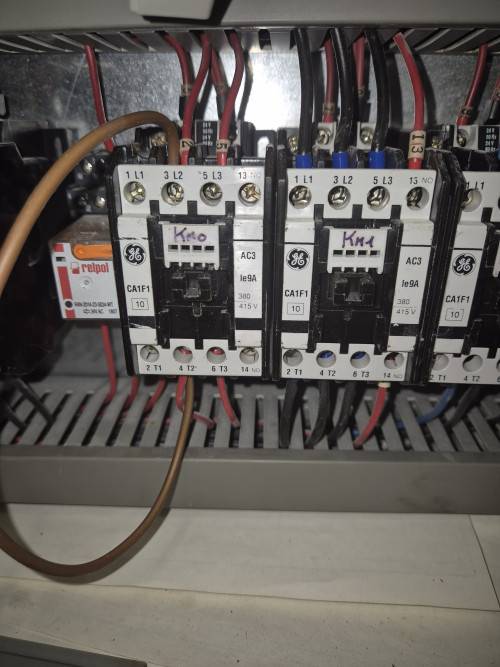 Na zdjęciu masz stycznik mocy na 4kW przy AC-3. Możesz zastosować dowolnej firmy z podanego linku. Dodatkowo stycznik posiada jeden styk zwierny (1Z lub jak kto woli1NO), na pokładzie. https://www.tim.pl/aparatura-elektryczna/sterownie-i-zabezpieczenie-silnikow-elektrycznych/styczniki-mocy-ac?filters[dostepnosc_u_dostawcy.keyword]=Do+24h&filters[EF001364__znamionowa_moc_pracy]=4-%3E4 . Na zdjęciu nie widać napięcia sterowania, ale z tej listy można sobie taki dobrać. Kosnstrukcyjnie i wizualnie bardzo podobne do GE są styczniki ETI Polam: https://www.tim.pl/aparatura-elektryczna/sterownie-i-zabezpieczenie-silnikow-elektrycznych/styczniki