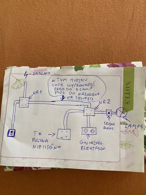 Czyli tą lampe z czujnikiem zostawiasz i nic z nią nie będzie robione, a pozostałe 3 lampy chcesz zrobić na 1 włącznik?
