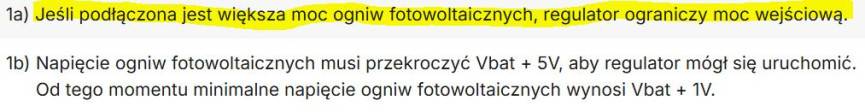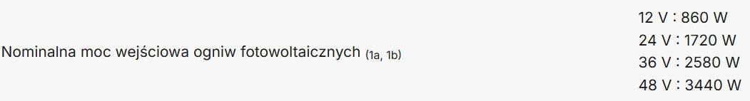 @Tomasz Brzostowski: Dziękuję za odpowiedź. Nominalna moc regulatora wynosi 1720W. Akumulatory 100Ah AGM są 4 podłączone szeregowo - równolegle na 24V.