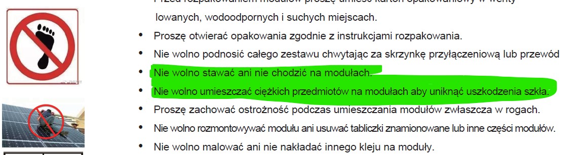 Należy unikać bezpośredniego parcia na ogniwa, czyli na szkło. Jeżeli już dochodzi do takiej sytuacji to najbezpieczniej oprzeć się o ramę, najlepiej jeszcze w jej punkcie podparcia (tam gdzie występuje profil/mostek)."