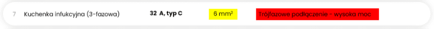 - 32 A – do gniazd siłowych (400 V), np. dla kuchenek indukcyjnych lub sprzętu warsztatowego.