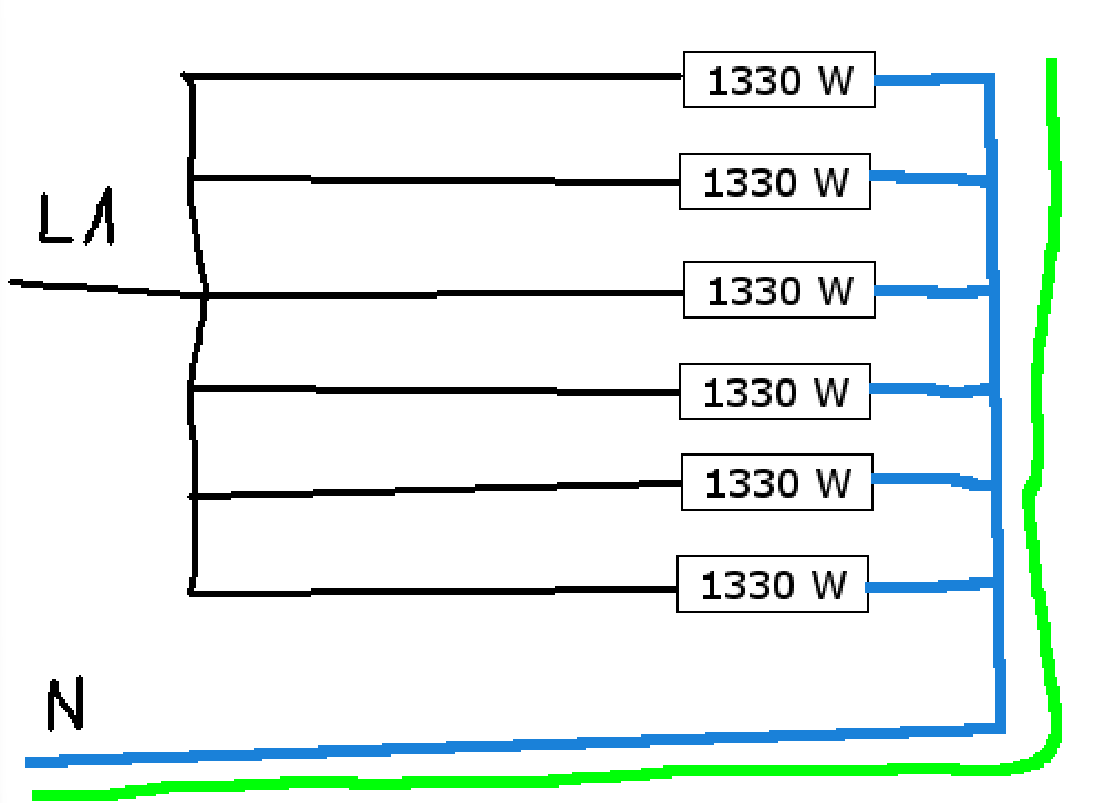 poradźcie jaki przekrój przewodu dać bo mam nietypowe połączenie grzałek zasilanie 1-fazowe długość 3 m. Przewody fazowe te szesć szt to wystarczy dać 1,5 mm2 bo tam będzie 5,8A ale pytanie jaki przekrój dać N i PE? W sumie tam będzie 7940W z jednej fazy to tak jak licze wychodzi 35A z jednej fazy. Nie mam jak podłączyć tego z kilku faz i potrzebuje rady jaki przekrój N i PE dać? Chcę dać rurkę RL na ścianie i w niej chyba same linki na fazy osobne 1,5 lub 2,5 mm2 a N i PE położyć osobnymi Lgy tylko jakie przekroje? @Mariusz Pajkowski zawsze mądrze radzisz coś mi podpowiesz? 6 mm na N wystarczy? I jaki dać na PE? @Lapp @Bitner