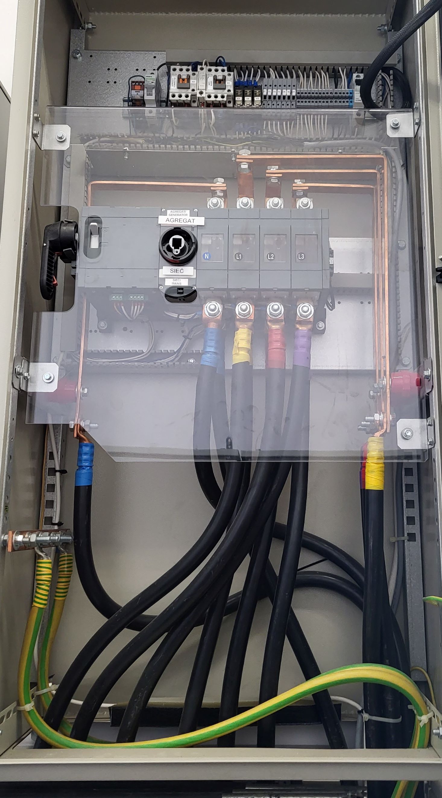Wykonujemy instalacje fotowoltaiczną na obiekcie, w którym jest agregat. Falownik jest oddalony od agregatu nie chcemy przenosić tam zasilania. Potrzebujemy wyłącznika sterowanego (63A) z SZR agregatu. Chcemy, aby po uruchomieniu agregatu nasz falownik został odłączony. Proszę o przedstawienie urządzenia jakie należałoby wykorzystać. Dodaje zdjęcie szafy agregatu