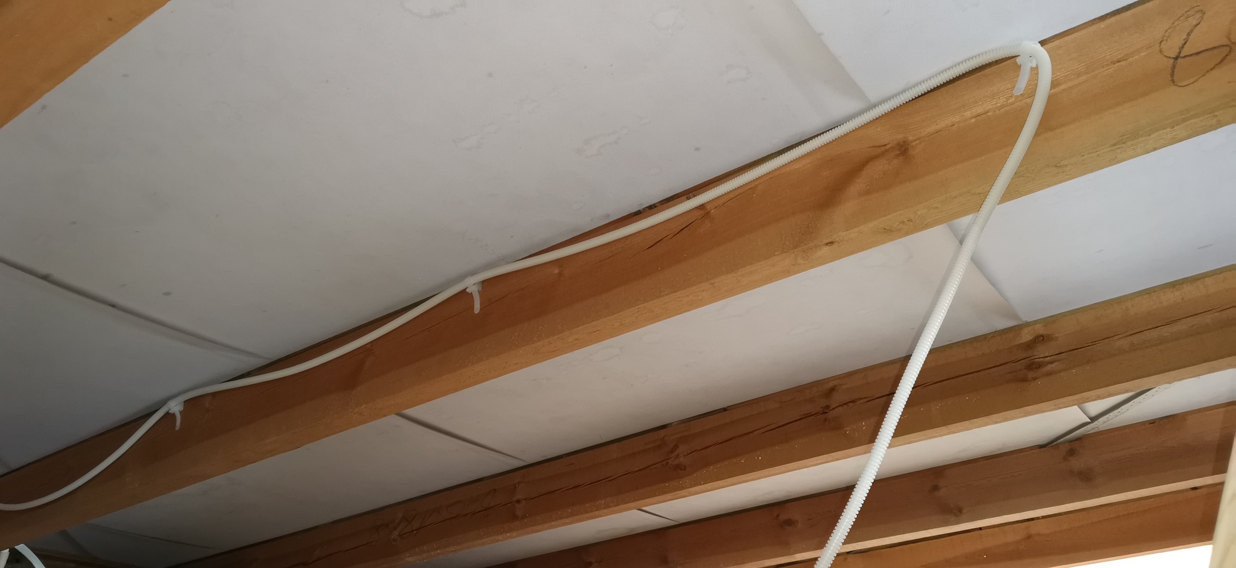 Czy dać je od strony membrany tak jak. Na zdjęciu. Czy najpierw dać 15 cm wełny. A dopiero później na skraju krokwi zamocować Peszel. Generalnie raptem tylko 3 kable będą szły do szczytu każdy w innym miejscu. Reszta w ściance kolankowej z regipsu