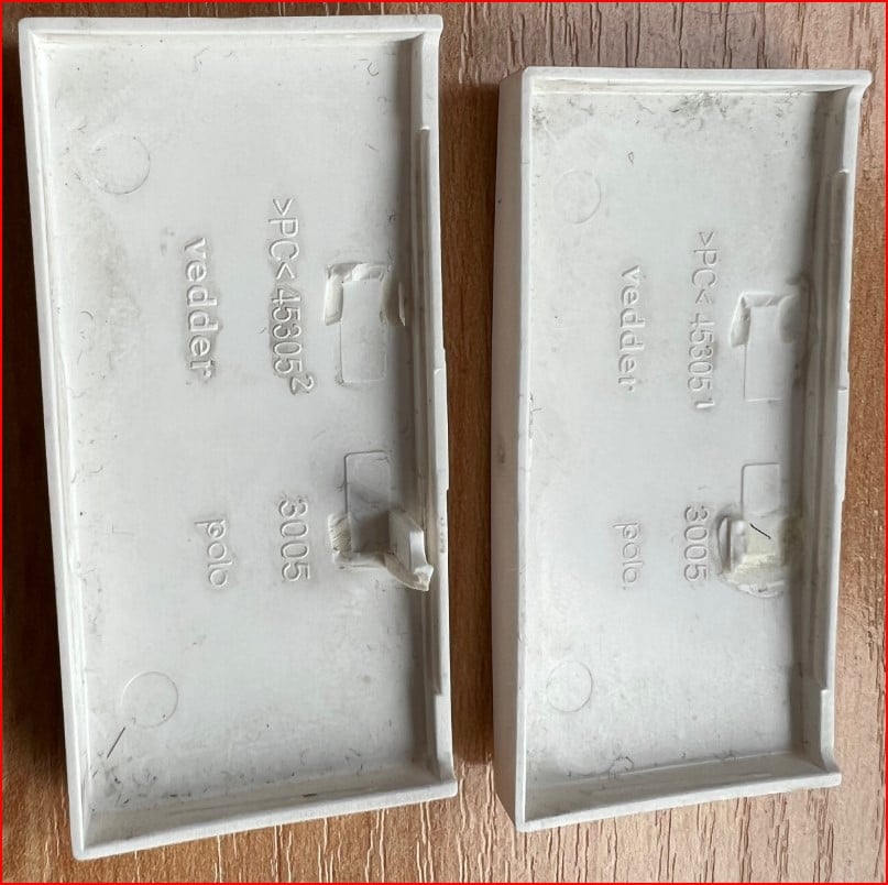 Znalazłem w sieci archiwalne wyniki zakupu produktów serii HAGER POLO OPTIMA VEDDER sprzed trzech i czterech lat. Co prawda, nie klawiszy jak na zdjęciach, ale jednak tej linii produktowej. Napisy na wewnętrznej stronie nie kłamały i chyba jednak były wskazówką.