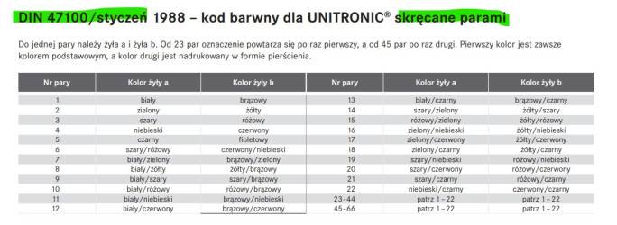 Niestety mamy problem z określeniem kolorów żył, nie jestem pewien w 100% czy powinienem si ę sugerować tym dokumentem: