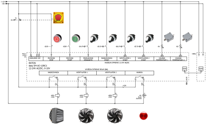 Dodatkowo zastosowana przycisk bezpieczeństwa dla awaryjnego zatrzymania układu sterowania. -