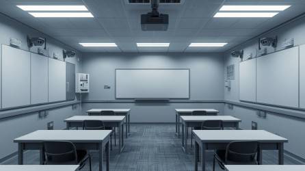 Adaptacyjne oświetlenie: system oświetlenia dostosowuje natężenie światła do warunków zewnętrznych oraz aktywności uczniów (np. przy wzmożonym ruchu przyciemnia światło w tym obszarze, aby zniechęcić do kontaktu wzrokowego).