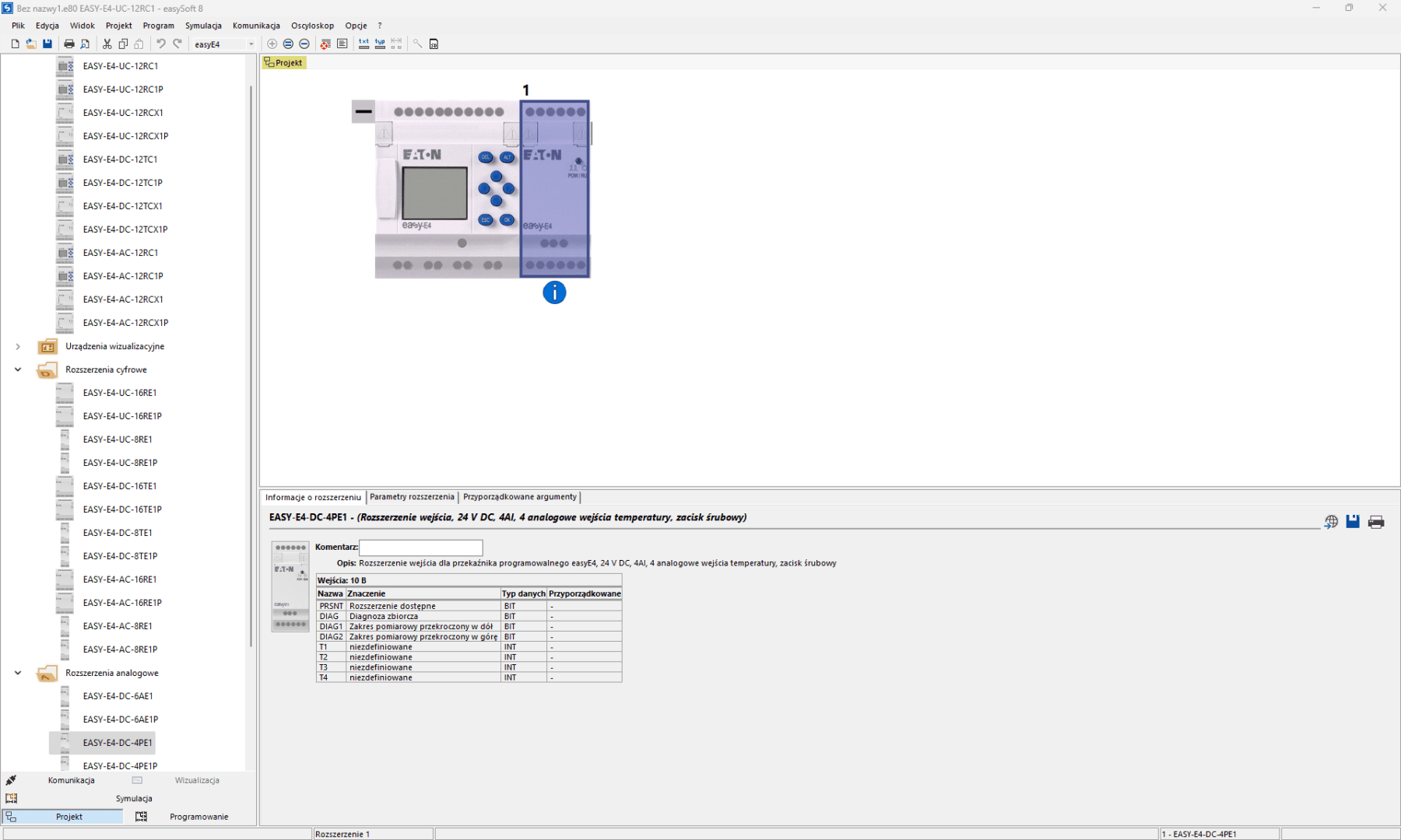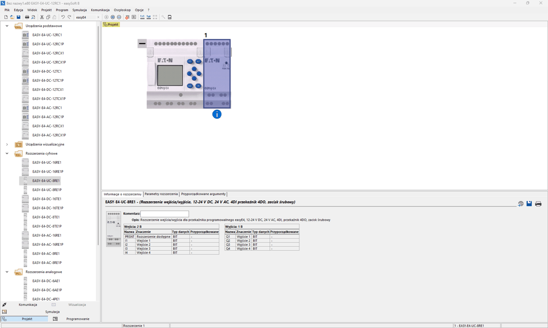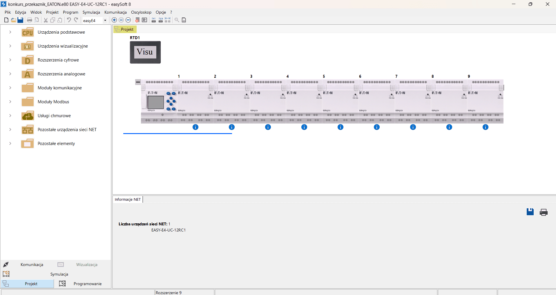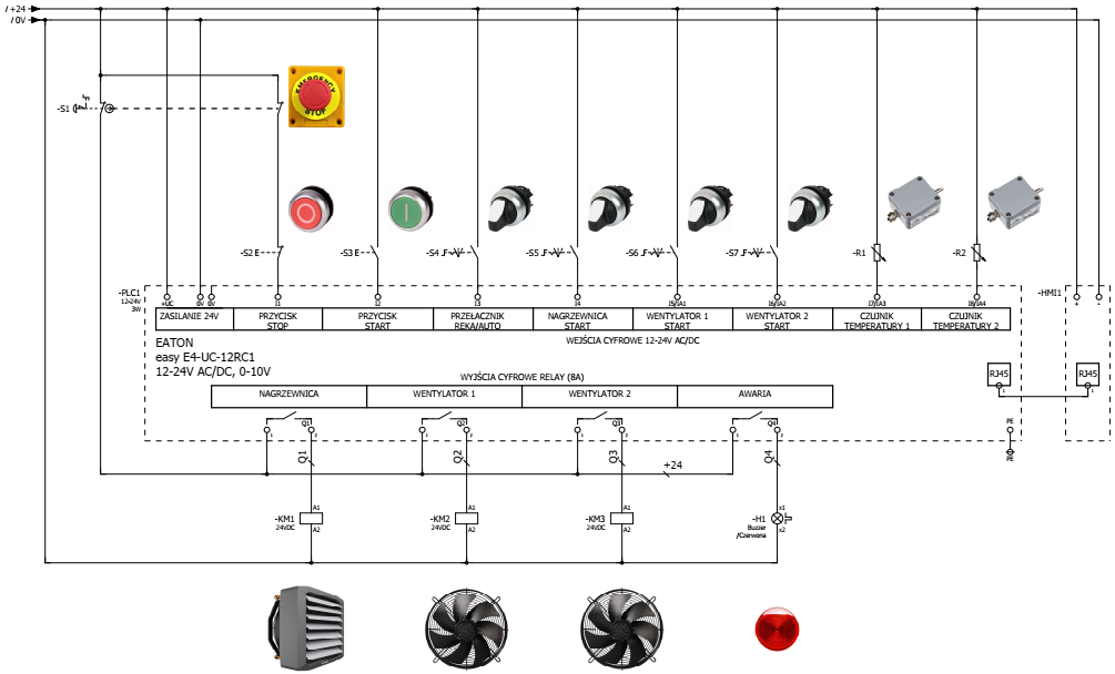 Dzięki otrzymaniu sterownika EASY od EATON będę mógł nie tylko rozwinąć własne umiejętności w zakresie programowania i konfiguracji systemów automatyki, lecz przede wszystkim wykorzystać go w dydaktyce. Uczniowie technikum zyskają możliwość pracy na rzeczywistym urządzeniu przemysłowym, poznając praktyczne zastosowania PLC w innowacyjnych projektach, co zwiększy ich atrakcyjność na rynku pracy.Elementy sterowania EATON: