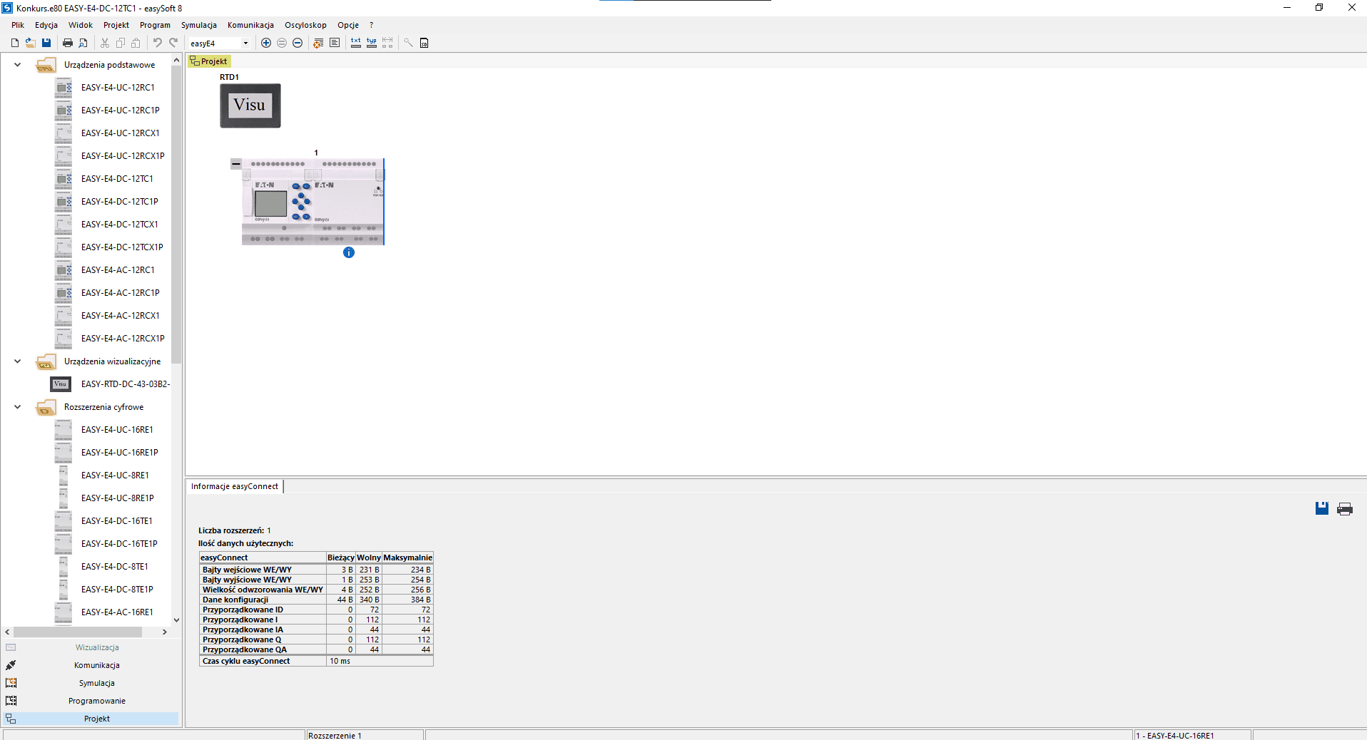 Schemat blokowy oraz konfiguracja w EasySoft zostały przygotowane i dołączone do zgłoszenia, w zdjęciach poniżej. Dodatkowo wykonano poglądową wizualizację, jak takie urządzenie mogłoby wyglądać (obudowa oparta na np. profilach aluminiowych 2020 i częściach wydrukowanych na drukarce 3D).