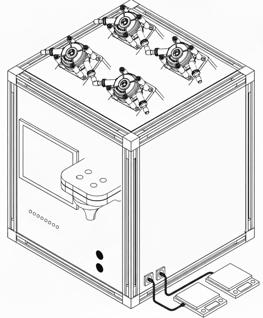 Zastosowanie pomp perystaltycznych pozwoli na dokładne odmierzanie ilości składników, wykorzystując charakterystyki wykorzystanych pomp. Same składniki będą kontrolowane przez wagi - jeżeli butelka będzie prawie opróżniona, to wyświetli się odpowiedni komunikat na wyświetlaczu (można także sygnalizować taką sytuację diodą.