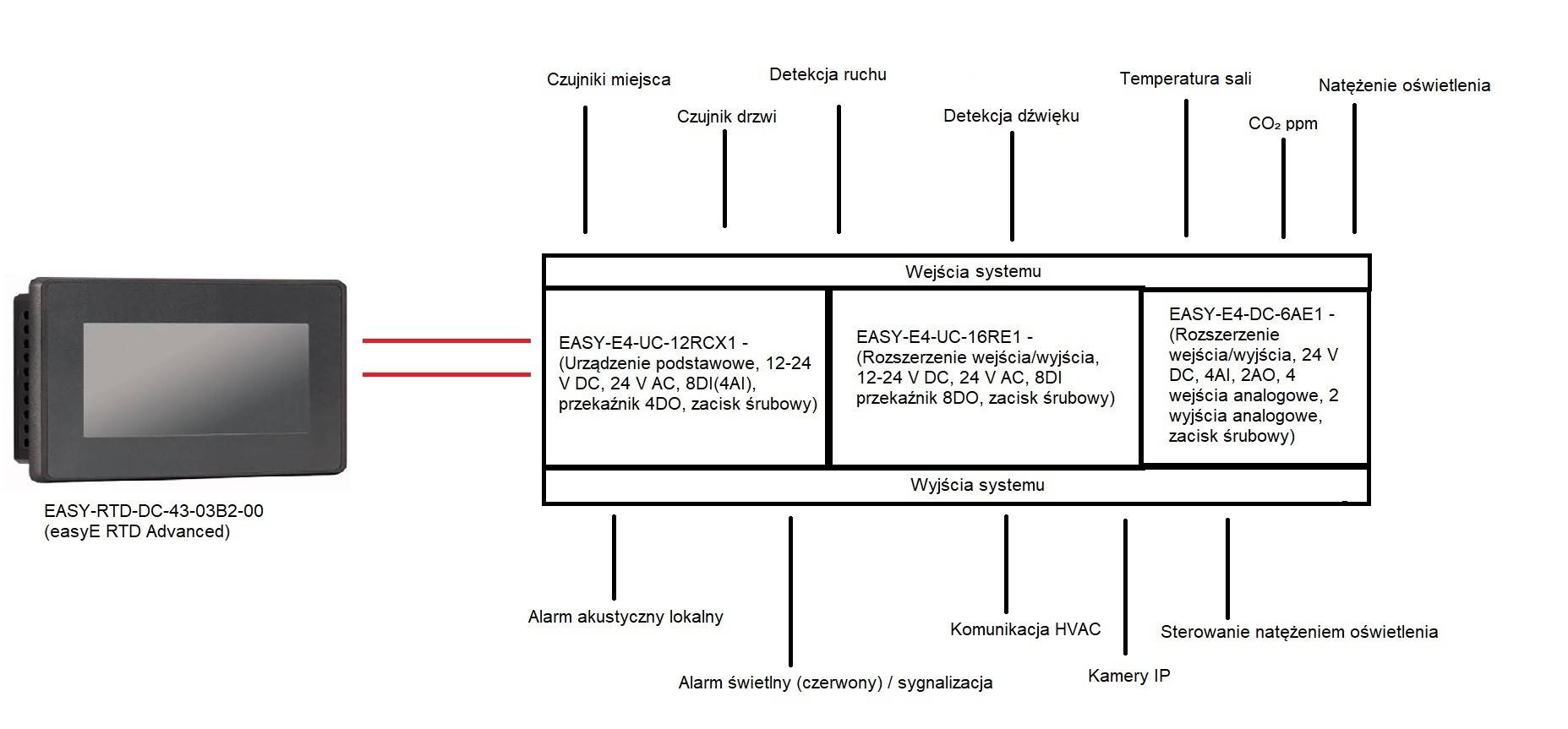 - Sterownik Eaton Easy odbiera dane z czujników (moduły analogowe).