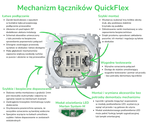 - Możliwość łączenia różnych wersji kolorystycznych ramek i mechanizmów.